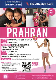 NETFIT Netball is running a Netball Clinic in Prahran on Monday 23rd of September 2019.