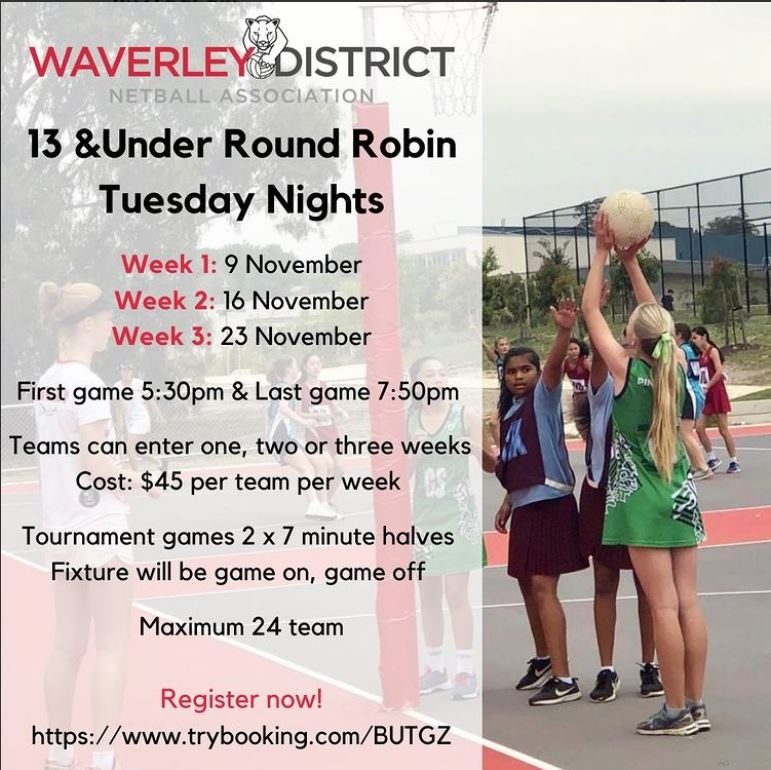 Waverley District Netball Association is running a couple of social competitions for teams to get back on court and get in a little bit extra netball for 2021 (teams don't need to be part of our Association, our usual Saturday comp is running for them).